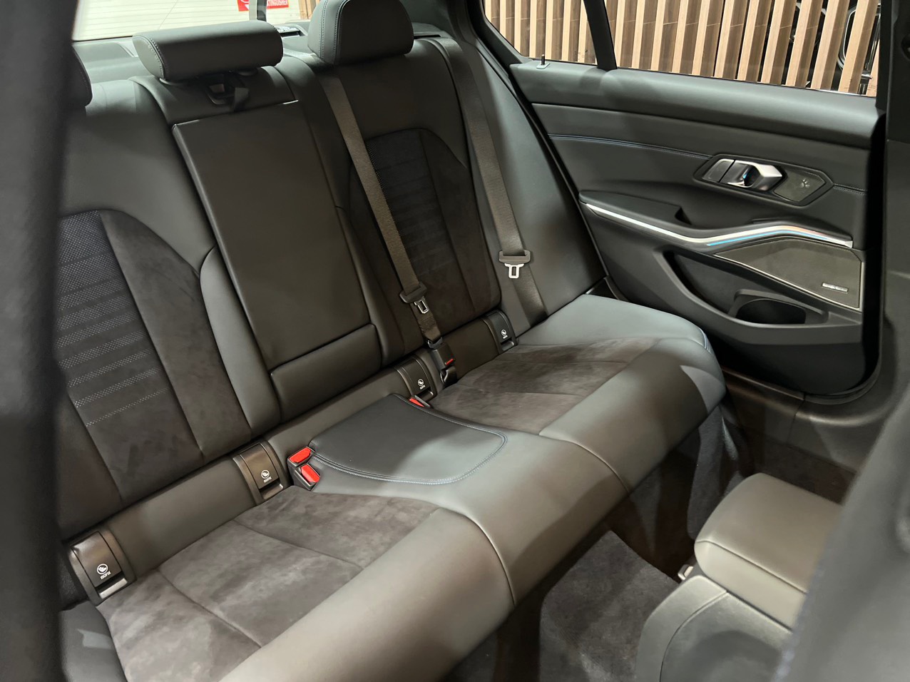 Nội thất BMW 330i M Sport 2023 : Da Sensatec phối Alcantara/Black, chỉ khâu tương phản Blue.