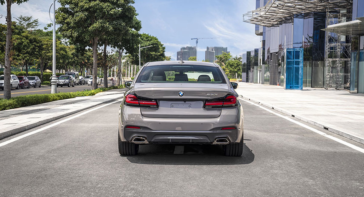 Cản sau của BMW 5 Series mới được thiết kế bề thế hơn với đèn hậu LED 3D sắc sảo. Thêm vào đó là trang bị ống xả kép hình thang đậm chất đường đua tạo nên cá tính riêng biệt cho 5 Series mới.