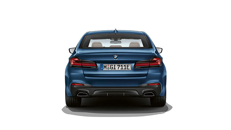 BMW 5 Series Sedan hướng đến tính thể thao và sự tự tin vượt trên cấp độ thông thường là nhờ vào các chỉ số đặc điểm như trục cơ sở dài, nắp ca-pô mở rộng và đường mái uốn lượn. Các đường gân tinh tế mang lại sự tương phản lôi cuốn cho bề mặt được sắp xếp hợp lý, tinh gọn để tạo ra vẻ ngoài hiện đại, đầy tinh tế. Cụ thể, lưới tản nhiệt hình quả thận BMW và cụm đèn BMW Laserlight tạo cho mặt trước một nét năng động và độc đáo. Đèn pha được kết nối liền mạch với lưới tản nhiệt hình quả thận, giúp nhấn mạnh thêm bề rộng của xe và tạo ra sự sang trọng xuyên suốt cho đến tận các ống xả ở phía sau. Thành quả tạo nên hình ảnh tổng thể mang phong cách thể thao đặc trưng.